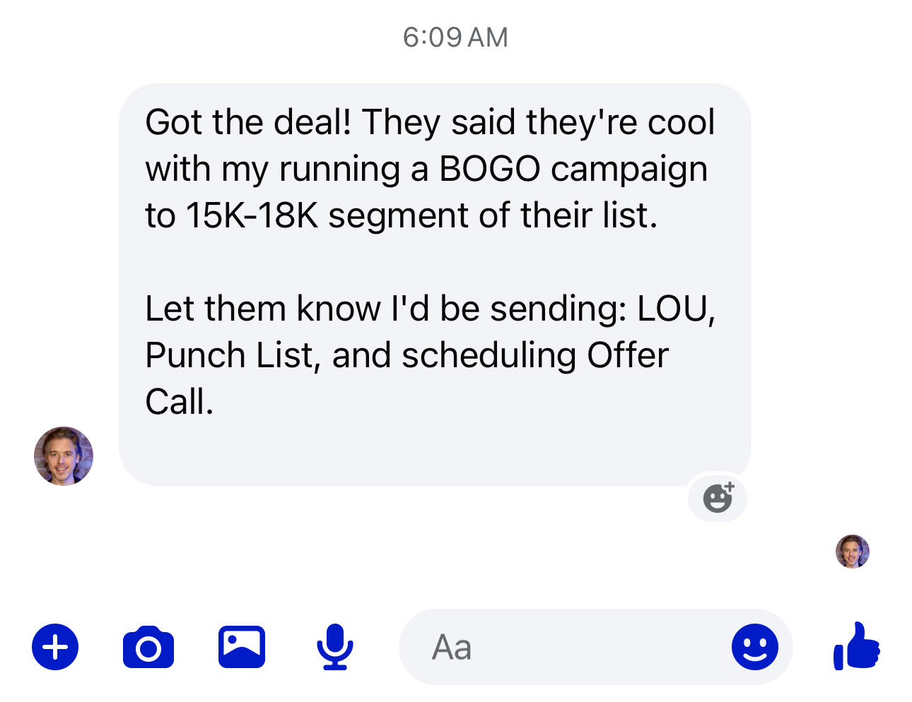 We partner with successful business owners who have too much going on. They’ve built the list. They’ve built the offer. What they haven’t done is go back through the thousands of buyers, leads, and past prospects who never converted.